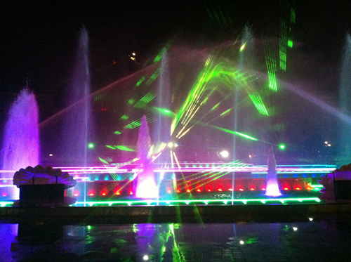 The design concept of the terrace water curtain originates from the terraces in Guizhou villages and the famous Huangguoshu Waterfall. At night, the water curtain plays on, utilizing techniques combining fountains, music, fireworks, a water curtain and lasers to bring tourists and local citizens a terrific visual feast.