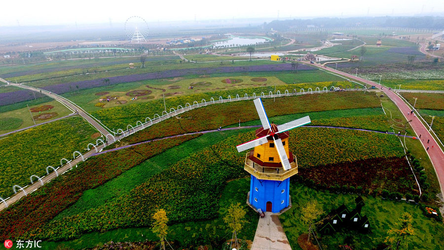 Beijing starts fitting giant flower terrace on Tian'anmen Square