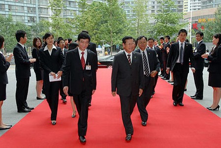 On Sep 10, 2009, Somsavat Lengsavad, member of the central political bureau and Standing Deputy Prime Minister of Laos, visited the CGGC International, attended by Vichit Xindavong, Laodian ambassador in China, and was warmly received by the leader of the company.