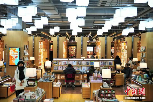 Shenyang residents peruse books in a Shenyang bookstore. A Shenyang bookshop recently introduced a train into the middle of its shop.[Photo/Chinanews.com]
