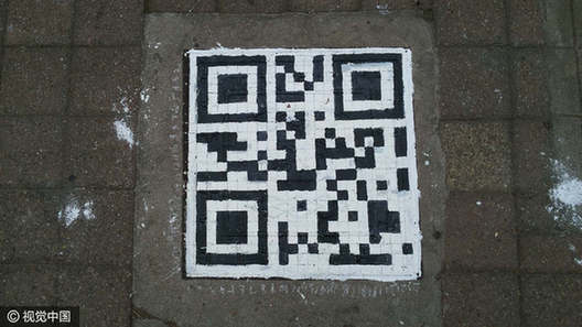 A QR code is seen on a manhole cover in the campus of Shandong University of Arts, Dec 12, 2016. [Photo/VCG]