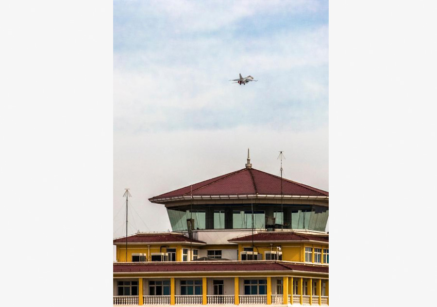 A JH-7 fighter bomber attached to a brigade of the air force under the PLA Northern Theater Command takes off for a sortie during a flight training exercise in East China's Shandong province. [Photo/eng.chinamil.com.cn] |