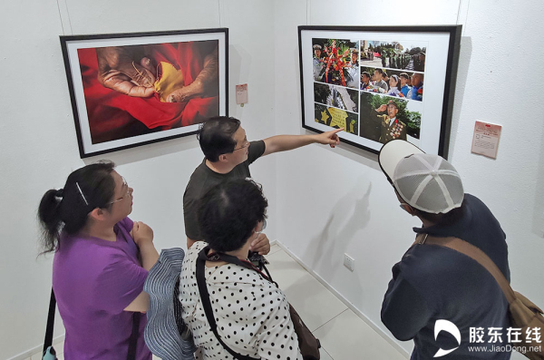 Visitors admire photos during the exhibition in Yantai. [Photo/jiaodong.net]