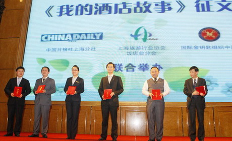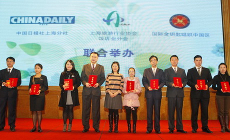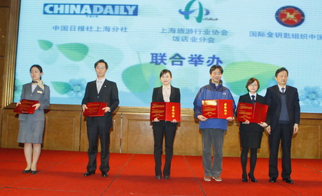 旅游行业协会饭店业分会秘书长裘永强为获奖人员颁奖 | http://www.chinadaily.com.cn/m/shanghai/hotels/2012-04/26/content_15147185.htm |