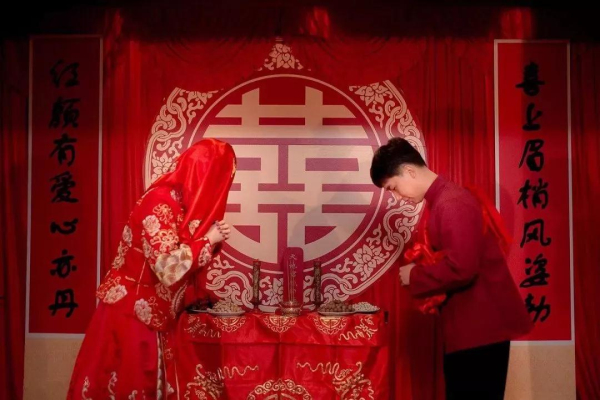 A traditional Chinese wedding highlighting traditional Chinese traditional folk customs takes place in Moon Lake Sculpture Park. [Photo provided to chinadaily.com.cn] |