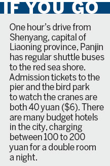 It is an amazing experience walking along the 680-meter-long trestle bridge right into the center of this sea of red, especially when the tide is at ebb and flow.