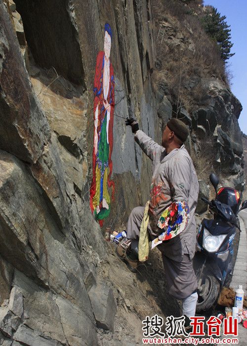 Buddhist paintings on Mount Wutai are a daily routine for Huixiang. [Photo/ wutaishan.city.sohu.com]