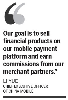 Li said that China Mobile is looking to profit from its own mobile payment platform called "And Wallet", which has more than 20 million users.