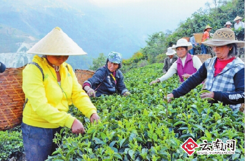 Tea growers pick tea leaves in Yunnan province. [Photo/yunnan.cn] |