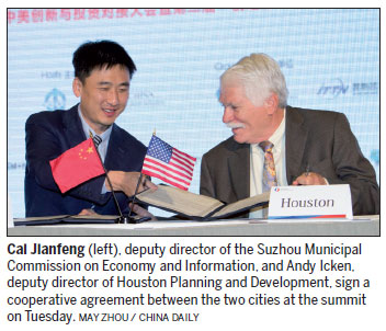 Suzhou, as the highlight city of this year's summit, signed a cooperation agreement with Houston, committing to establish the China-US Bio-Tech Innovation Center (CUBIC) in Houston this year with the Jiangsu Industrial Technology Research Institute.