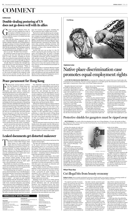 A COURT IN ZHEJIANG PROVINCE has announced its ruling in the country's first case of native place discrimination in job recruitment. The law is of great significance to the fight against discrimination and safeguard the equal right to employment. China Daily writer Wang Yiqing comments: