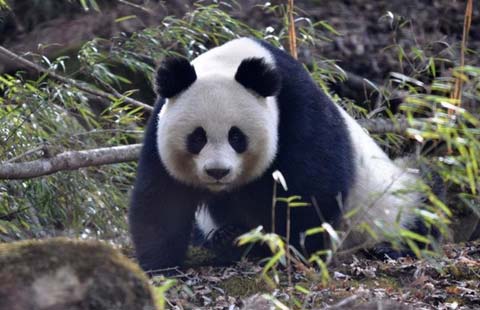 A wild giant panda is photographed at Tangjiahe National Nature Reserve in Sichuan province, March 18, 2014.