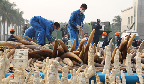 China, for the first time, destroyed 6.1 tons of confiscated elephant ivory on Monday.