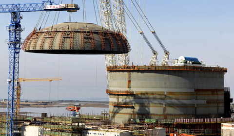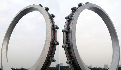 A Ferris wheel with no spokes and a diameter of 84 meter is near completion in Changzhou, East China's Jiangsu province, Nov 23.
