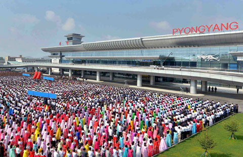 The newly completed terminal of Pyongyang International Airport, which the Democratic People's Republic of Korea (DPRK) says is "a model edifice in the Songun era," was officially put into use starting Wednesday after a topping out ceremony held here in the morning.