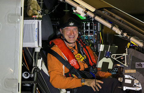 Swiss Andre Borschberg, who is attempting to circumnavigate the globe, breaks a world record for the longest non-stop solo flight.