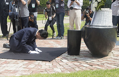 Japan's former prime minister Yukio Hatoyama said he expected current Prime Minister Shinzo Abe to face up to history, admit Japan's aggression and apologize to the victims during his statement marking the 70th anniversary of the end of the World War II.