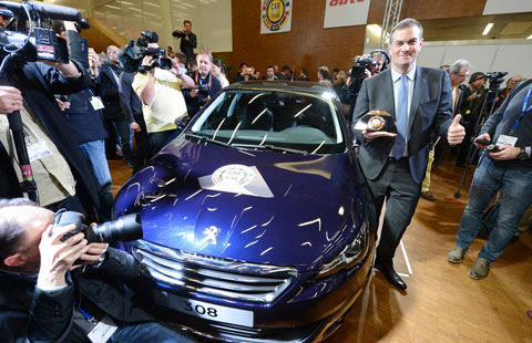The Peugeot 308 is named Car of the Year one day before the first press day of annual auto show Geneva Motor Show in Geneva, Switzerland, March 3, 2014.