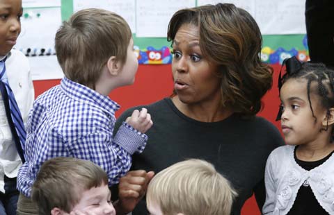 US first lady Michelle Obama prepares herself for an upcoming trip to China by visiting a local school known for its Chinese-immersion program.