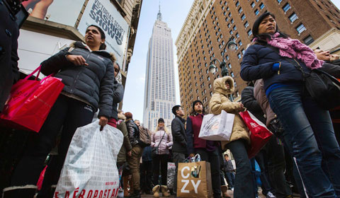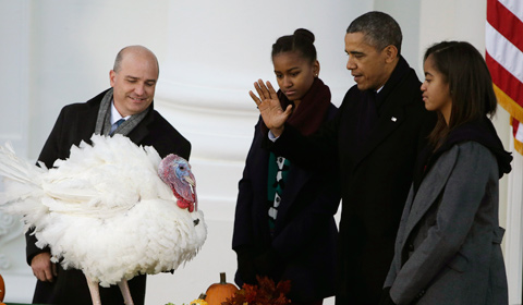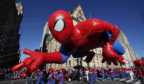 Americans gathered on Thursday to celebrate Thanksgiving by braving cold winds along parade routes.