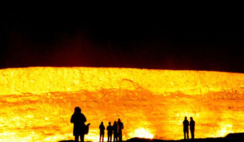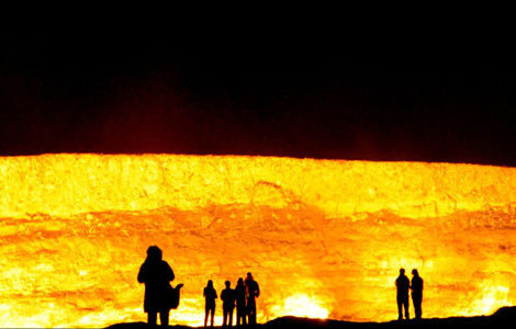 A fiery crater near Derweze village in Turkmenistan has baffled scientists for more than 40 years. The crater is 230 feet wide and is called "The Door to Hell" by locals, with its ever-burning flames and boiling mud inside.