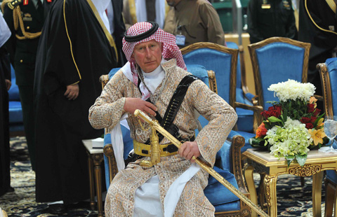 Prince Charles dances in traditional Saudi dress