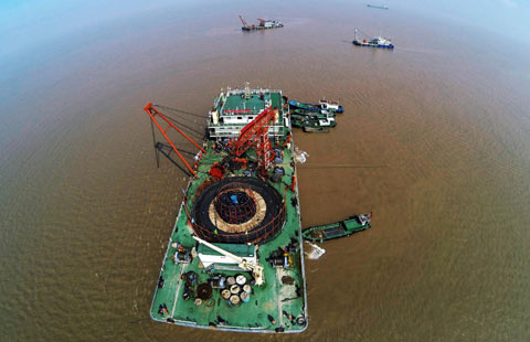The longest Chinese-developed DC (direct current) submarine power line finished construction in Zhoushan, Zhejiang, on Feb 28, 2014.