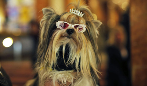 Dogs are seen at the Hotel Pennsylvania as part of the Westminster Dog Show in New York February 7, 2014.