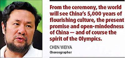 "From the ceremony, the world will see China's 5,000 years of flourishing culture, the present promise and open-mindedness of China - and of course the spirit of the Olympics," Chen says.