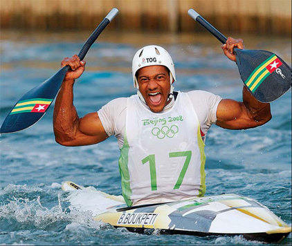 Benjamin Boukpeti of Togo slammed his paddle in the frothy water to celebrate his and his country's accomplishment.