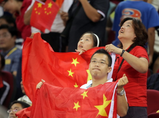 Chinese supporters look dejected at the end of the women's semi-final basketball match China against Australia of the Beijing 2008 Olympic Games on August 21, 2008 at the Olympic Basketball Arena in Beijing. Australia won 90-56.[Agencies]