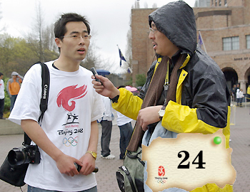 Local residents play matouqin, a Mongolian stringed instrument with a horse’s head carved at the end of the neck, at the launching ceremony of the Songyuan leg of the Olympic torch relay in Jilin Province, July 15, 2008. [chinanews.com.cn]