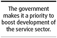 The government has made it a top priority to boost development of the service sector which has created more jobs than any other industries since 2000. But due to China's sizzling industrial growth, the share of the service sector in the GDP has continued to decline by 0.3 percentage points over the previous year to only 39.1 percent in 2007.
