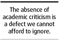 Although we all seem to accept that truth develops through debate of different views, there is a bewildering dislike, if not fear, of disagreements. The absence of a wholesome culture of academic criticism is a lamentable defect we cannot afford to ignore.