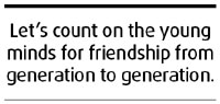 And the two countries are making this effort to bring their young people together. President Hu Jintao's greeting to visiting Japanese youngsters on Saturday - "let's count on the young minds and hearts to pursue a friendly relationship from generation to generation" - shows clearly the way forward. China and Japan has designated the year for friendship between their young people.