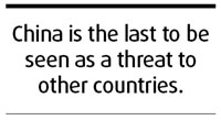 When it comes to intent, China is the last to be seen as a threat to other countries.