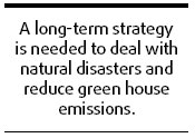 Updated: 2009-02-18 07:43 The worst drought to hit northern and central China in half a century has again reminded us of the urgency to get prepared for unexpected extreme weather conditions. It is necessary to divert water from major rivers to irrigate parched farmland and bring rainfall to quench the thirst of dehydrated crops by firing cloud-seeding chemicals into the sky. But a long-term strategy is needed to not only deal with unexpected natural disasters but to reduce the green house emissions that have contributed to global warming. China's meteorological department needs to further advance its technology for more accurate and earlier weather forecast, which will make it possible to prepare well for possible economic and human losses from natural calamities. What is even harder to implement and requires the efforts of every individual is the mission to reduce carbon footprints, believed to be the root cause of climate change.