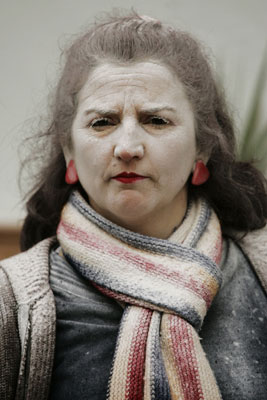 A woman covered in talcum powder takes part in "El Dia de los
