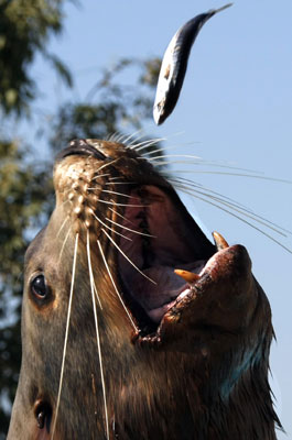 Updated: 2007-10-23 22:22 ![]() Laska, a 15 years old Steller sea lion, eats a fish at the Marinland sea world park in Antibes, southeastern France, October 23, 2007. Two Steller sea lions, the biggest sea lions in the world, arrived a week ago in the park. [Agencies]