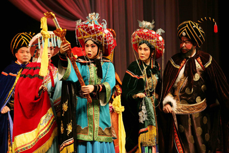 Traditional opera actors perform during a professional theatre contest in Guiyang, Southwest China's Guizhou Province, December 10, 2007. [Xinhua]