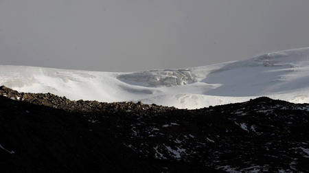 The Qiyi Glacier is seen on Qilian Mountain near the Jiayu Pass of the Great Wall, in Northwest China's Gansu Province, March 17, 2008. The Qiyi Glacier is the closest glacier to an Asian city, as it is located 116 km from Jiayuguan city. [Xinhua]
