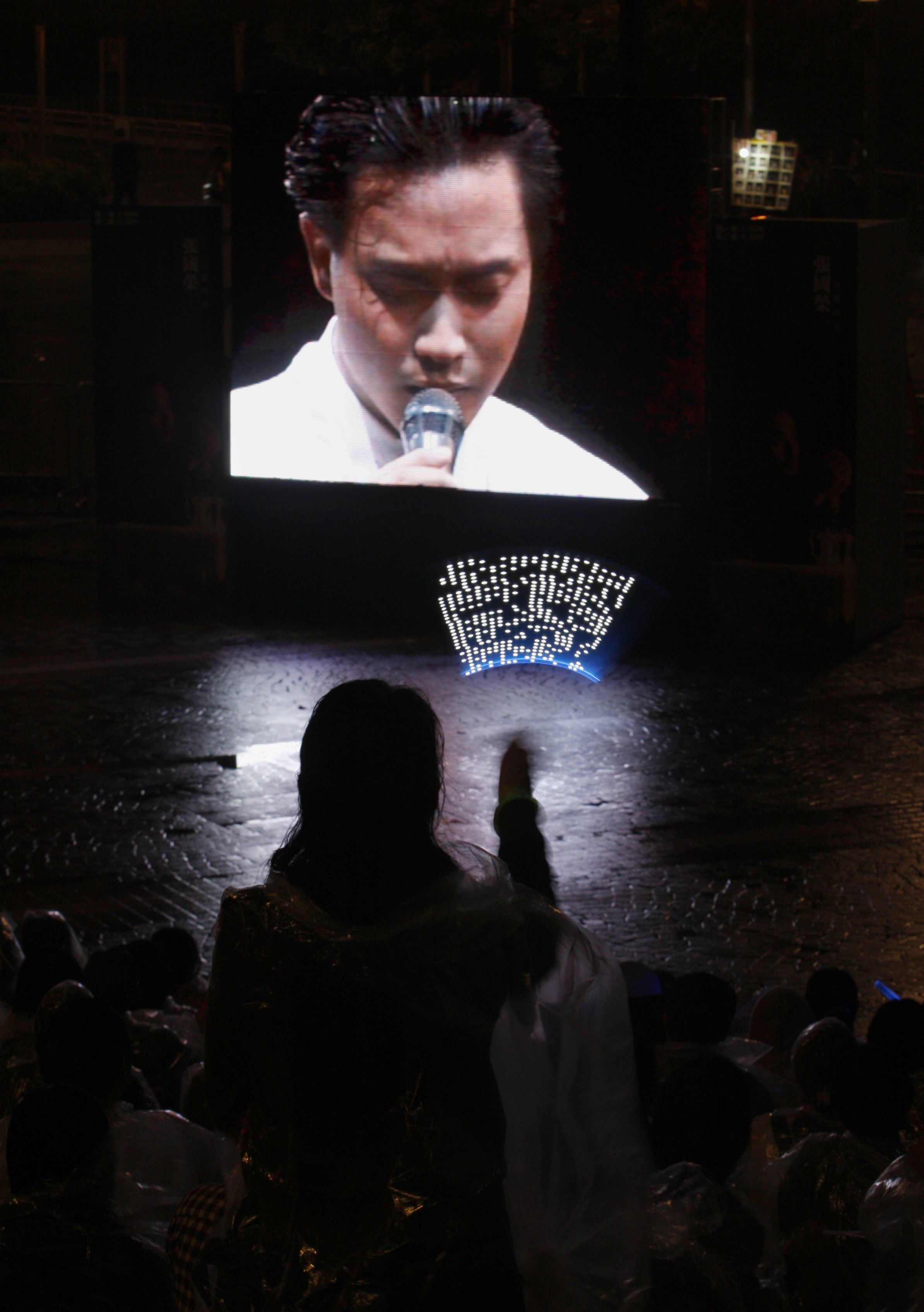 | A fan waves an illuminated stick as she attends an outdoor gathering for late Hong Kong pop star Leslie Cheung on the eve marking the fifth anniversary of his death in Hong Kong March 31, 2008. Cheung jumped to death from a hotel on April 1, 2003. [Agencies] |
