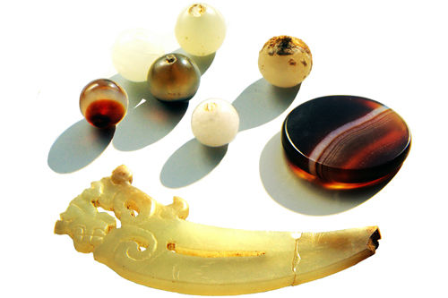 Jade and carnelian relics are displayed which were unearthed from tomb of Cao Cao, King Wu of the Wei kingdom during the Three Kingdoms period (AD 208 to 280). [photo/news.163.com] Related Story:Tomb of legendary ruler unearthed