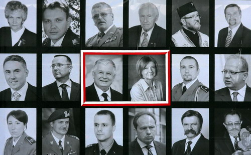 Portraits of late Polish President Lech Kaczynski, his wife Maria and other plane crash victims are seen during a commemoration ceremony at the Pilsudski square in Warsaw April 17, 2010.[Photo/Agencies