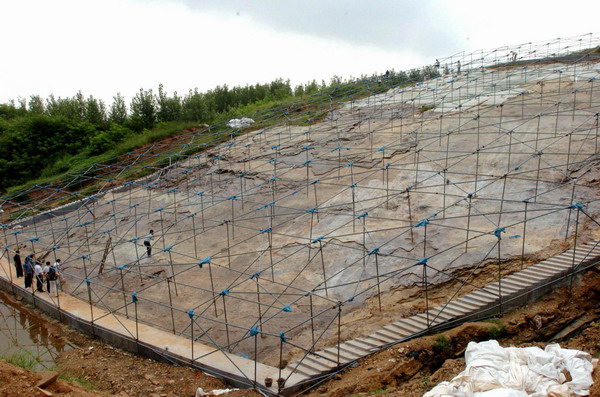 The excavation site of large fossilized dinosaur tracks is seen in this photo taken on August 10, 2010 Huanglonggou ditch, Dashan community, Huanghua town, Zhucheng city in East China's Shandong province. [Photo/Xinhua]