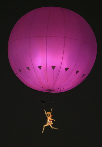 A performer hangs from a balloon at the launching ceremony of the AFC Asian Cup Qatar 2011 in Doha Nov 11, 2010. [Photo/Agencies]