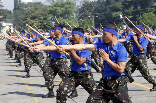 Soldiers take part in an arnis de mano martial arts competition among members of the Philippine armed forces at Camp Aguinaldo in Manila's Quezon city November 12, 2010. Arnis de mano is a form of Filipino martial arts that is structured on fighting with weapons.[Photo/Agencies] |