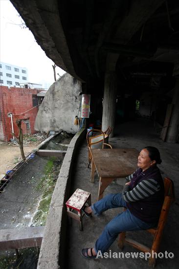 A woman rests on an open balcony in a karaoke hall-turned slum house in Haikou, capital of South China's island province of Hainan, March 22, 2011. [Photo/Asianewsphoto] |