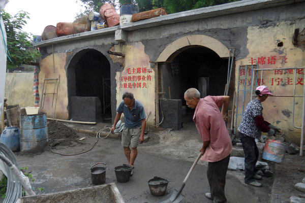 Workers at a construction site of a "Red" tourist spot in Chongqing municipality on June 15, 2011. [Photo/CFP]