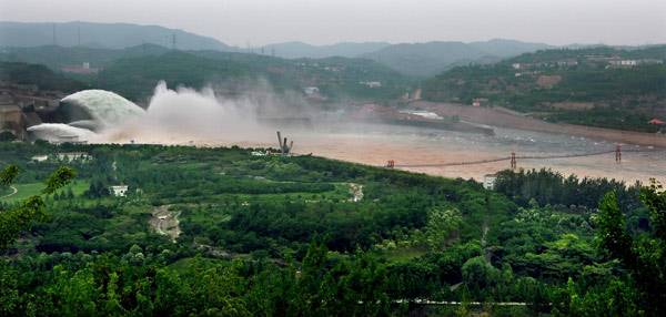 Flood and sand is discharged from the Xiaolangdi Reservoir on the Yellow River in Central China's Henan province, June 22, 2011. The operation, which is attracting many sightseers with its dramatic water flow, is expected to last for nine days, ending around June 30. [Photo/Xinhua]